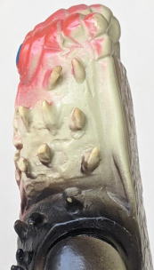 昭和のデフォルメソフビゆえ、手に持ち遊ぶ子供の安全を配慮して実物ほど尖っておらず、